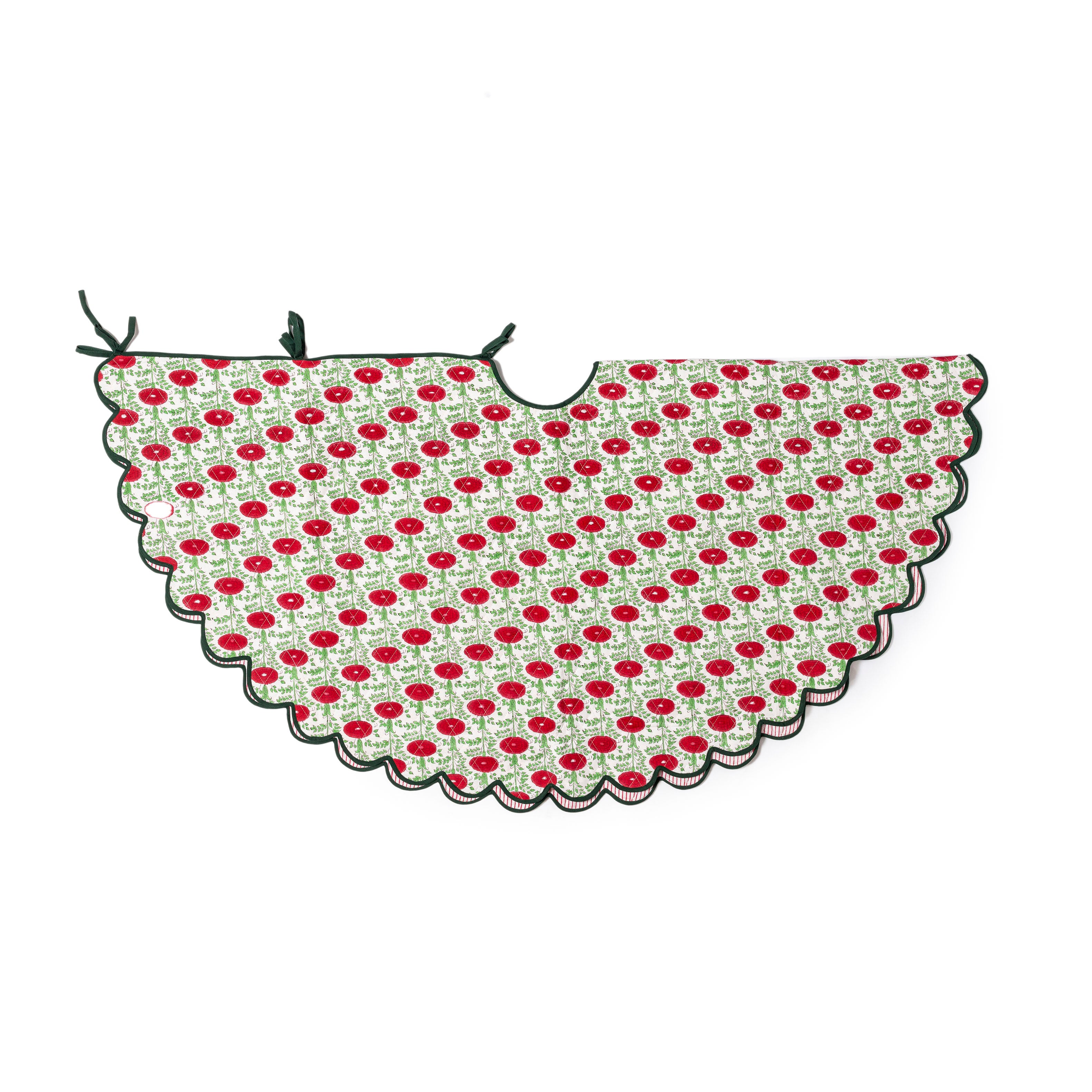 Scalloped Blockprint Quilted Tree Skirt in Araminta Red