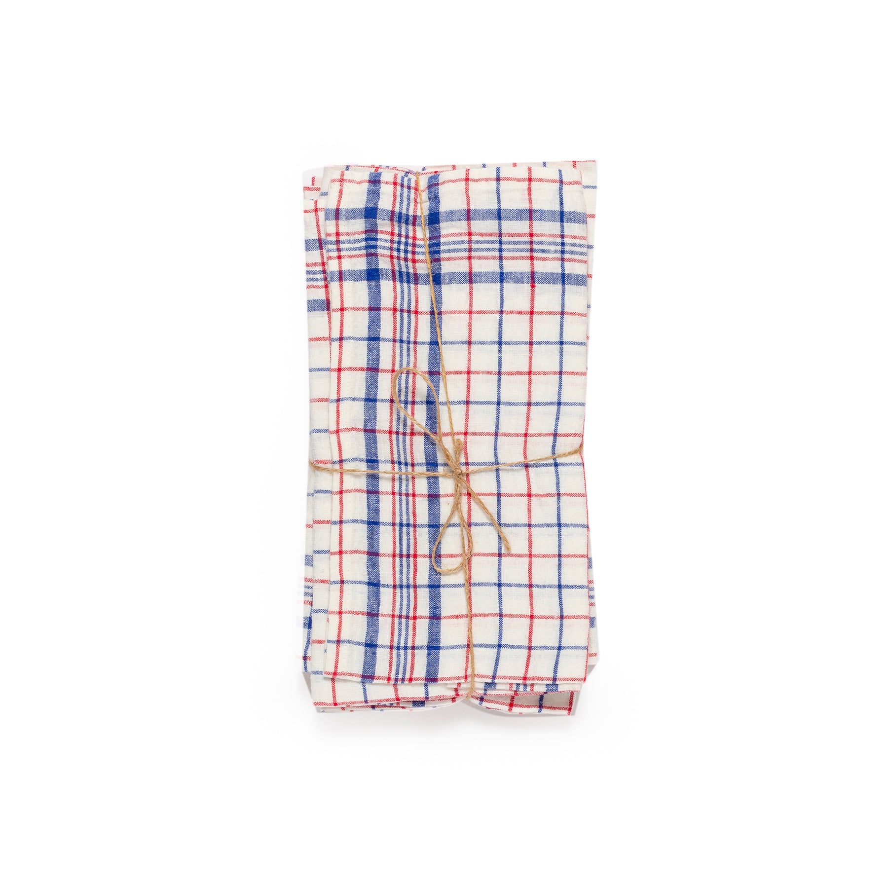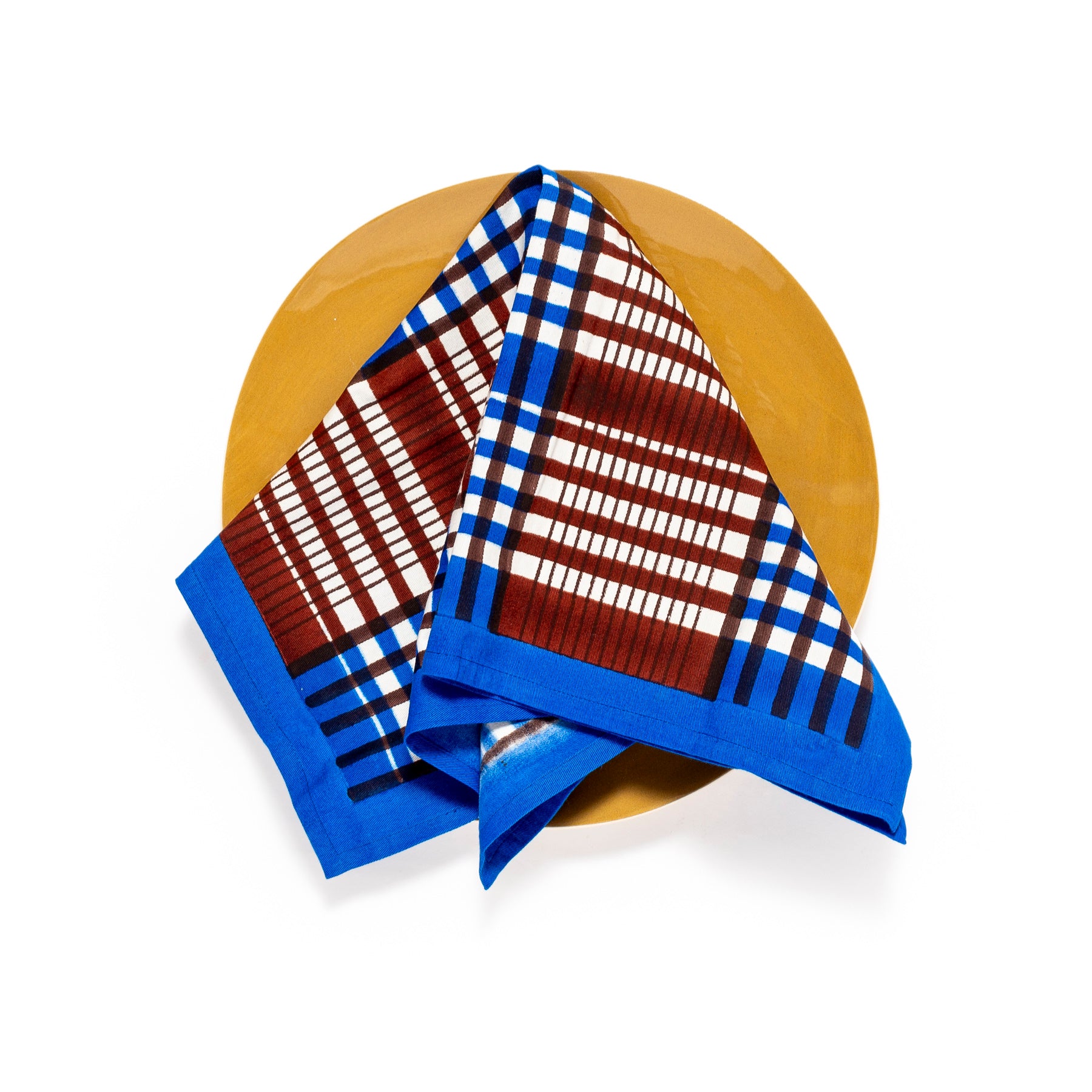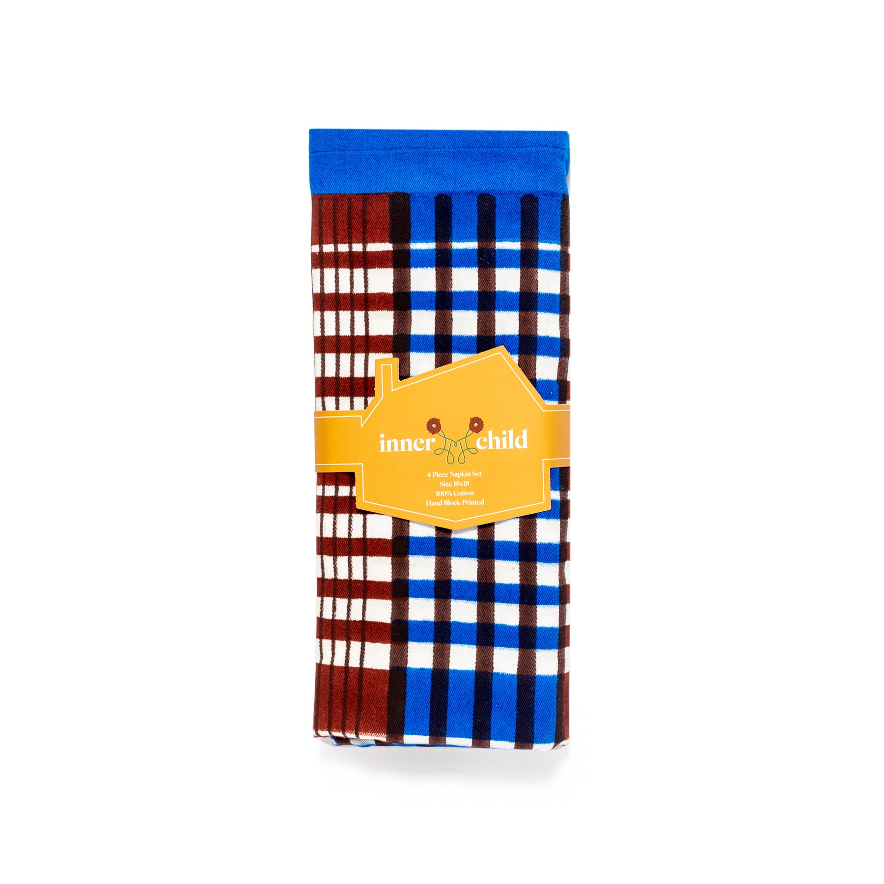 Shetland Plaid Blockprint Napkins in Brown and Blue