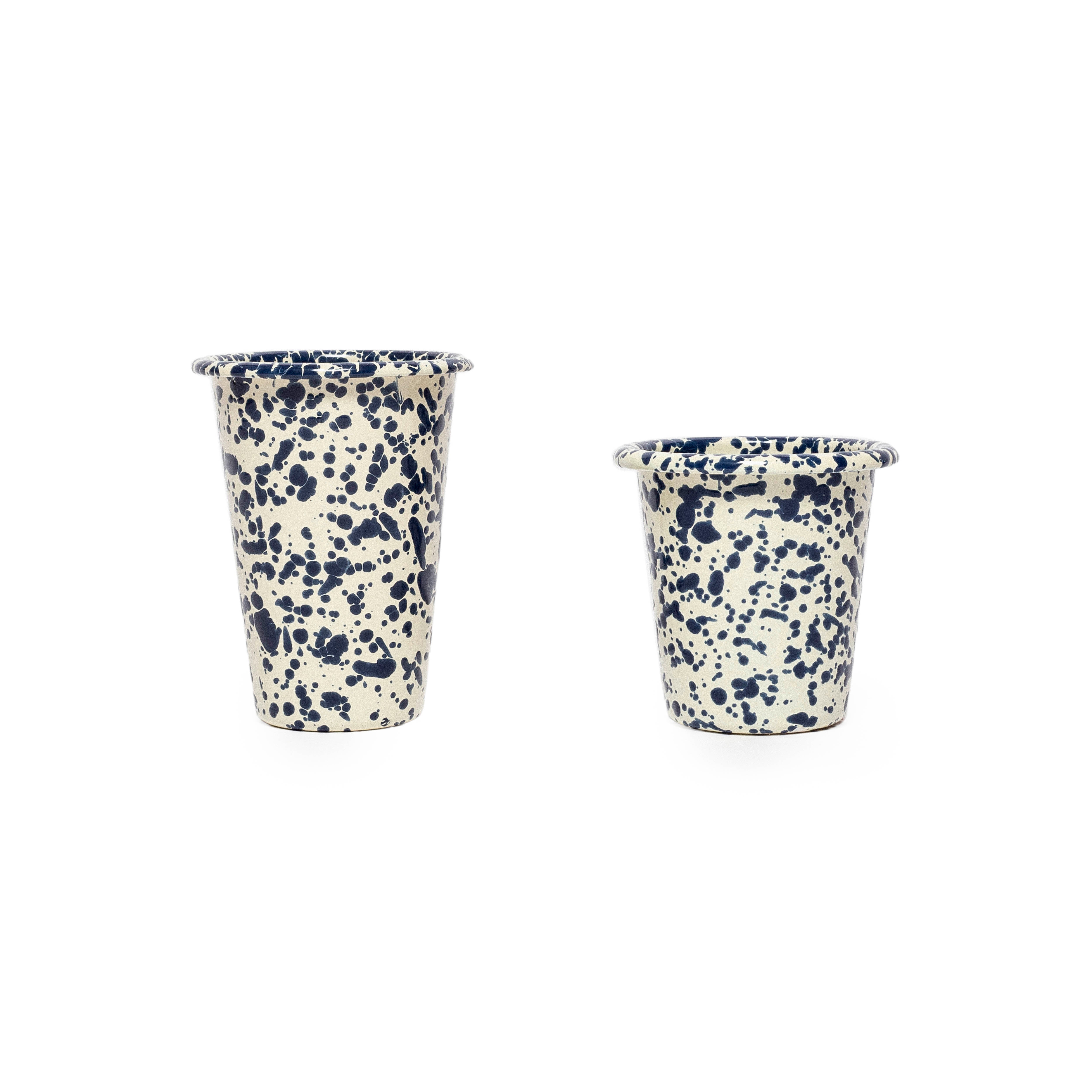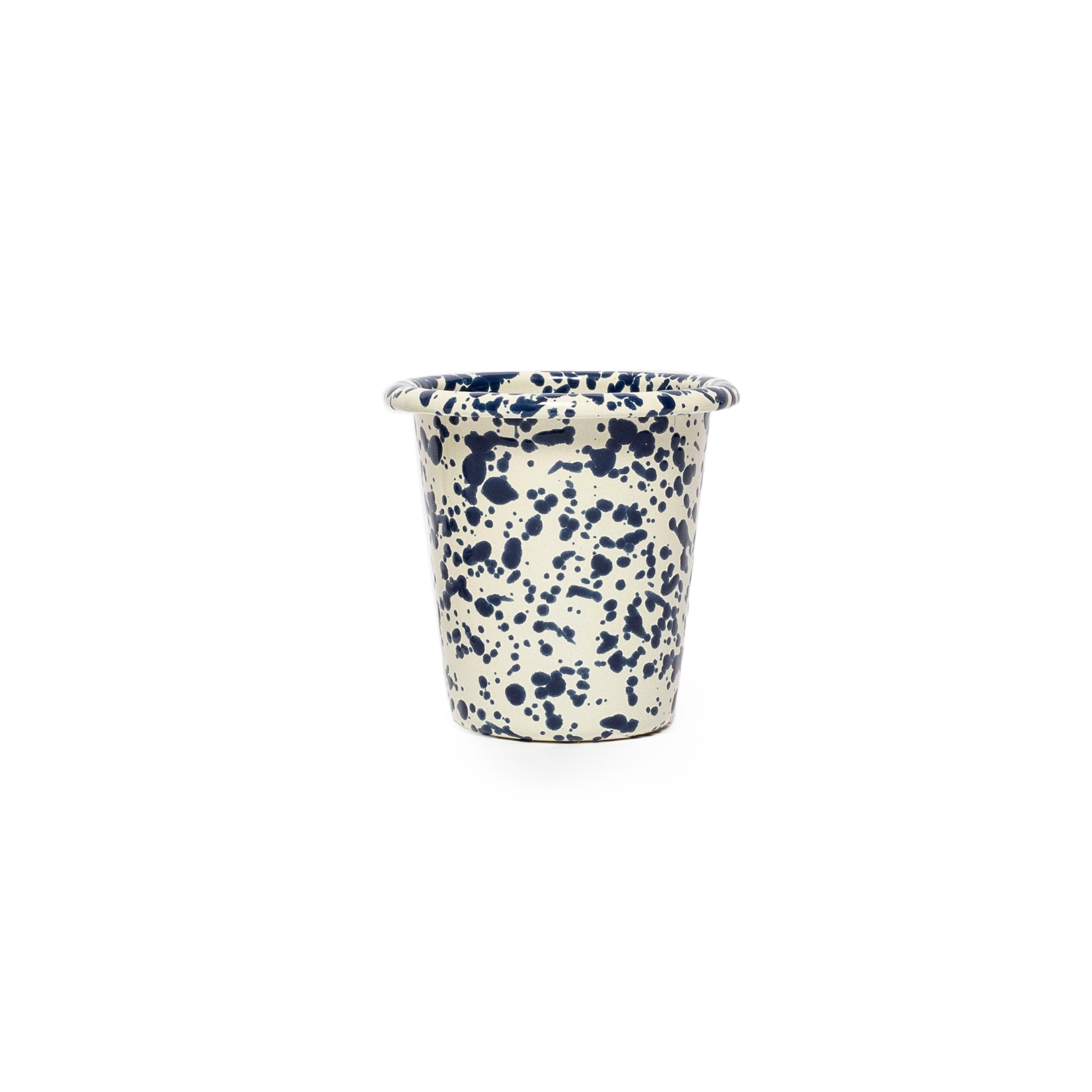 Navy and Cream Splatter Short Enamel Tumbler