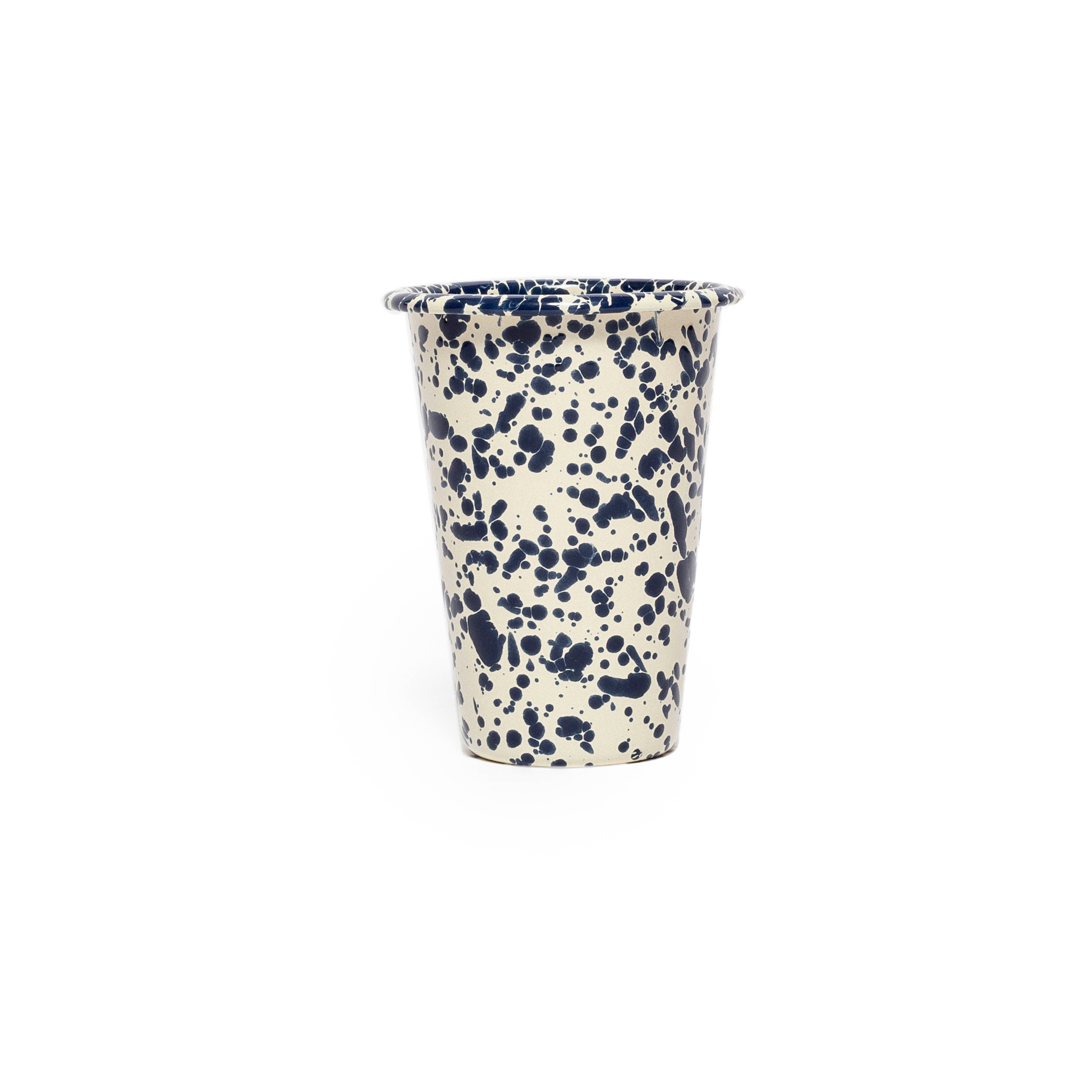 Navy and Cream Splatter Tall Enamel Tumbler