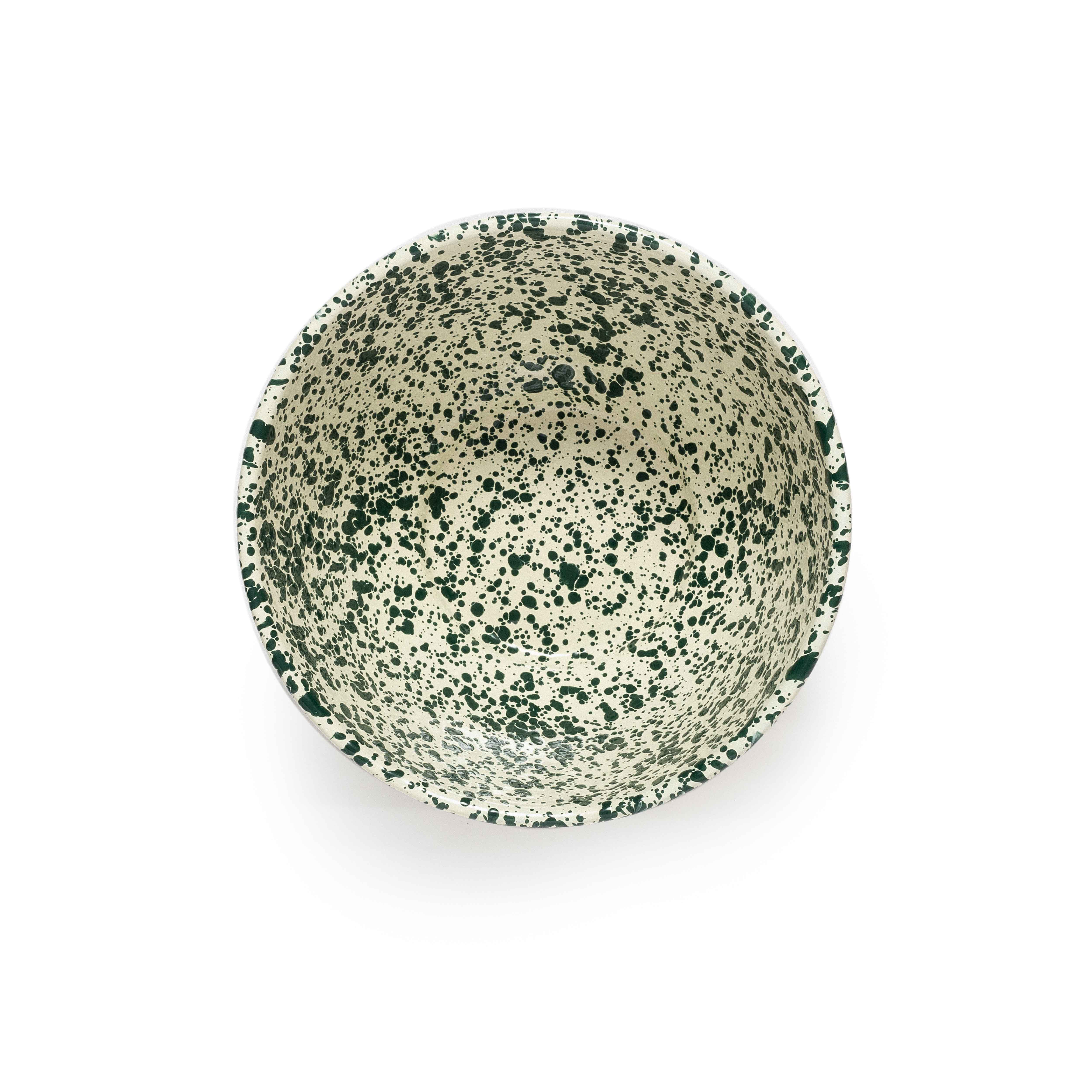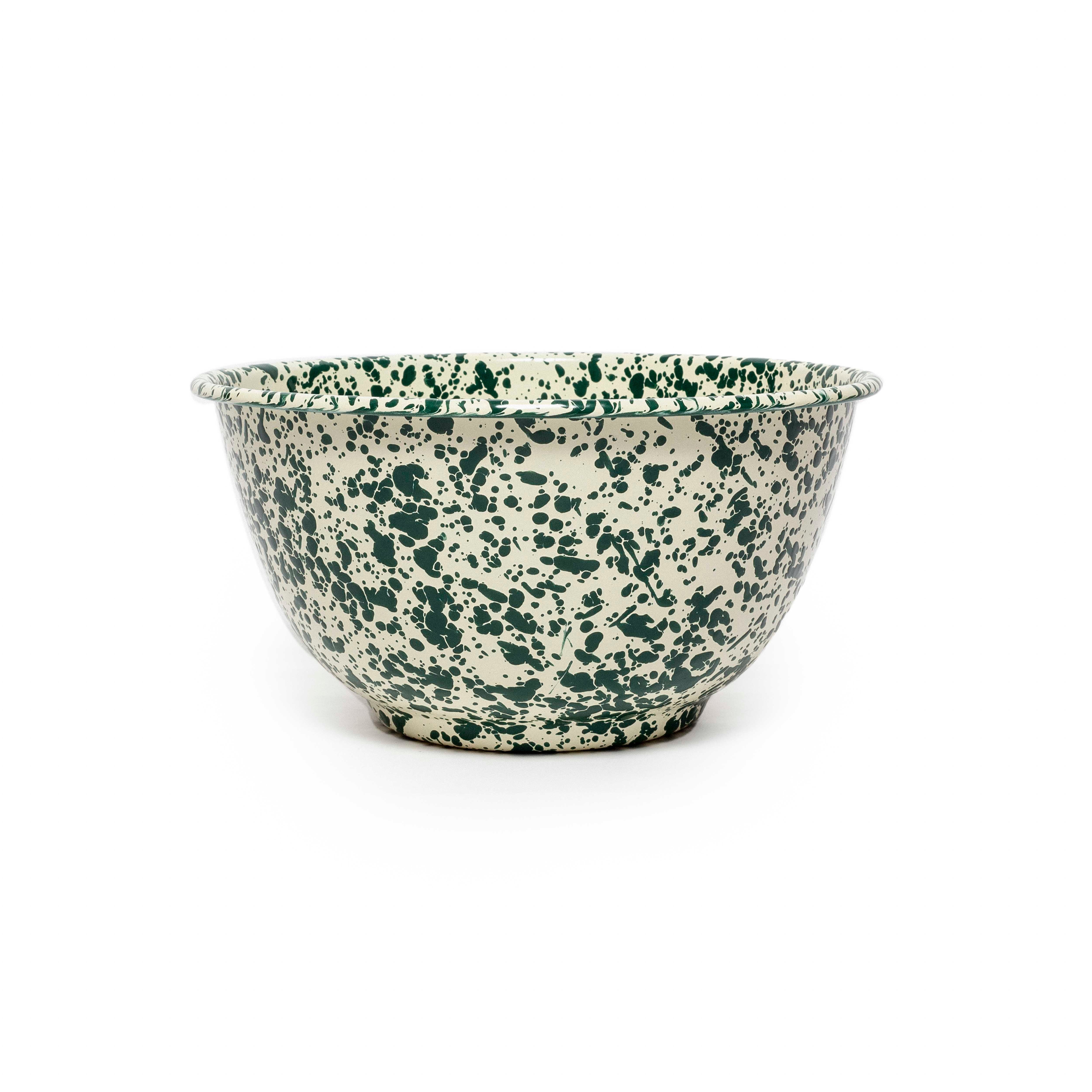 Splatter Enamel Large Green and Cream Salad Bowl