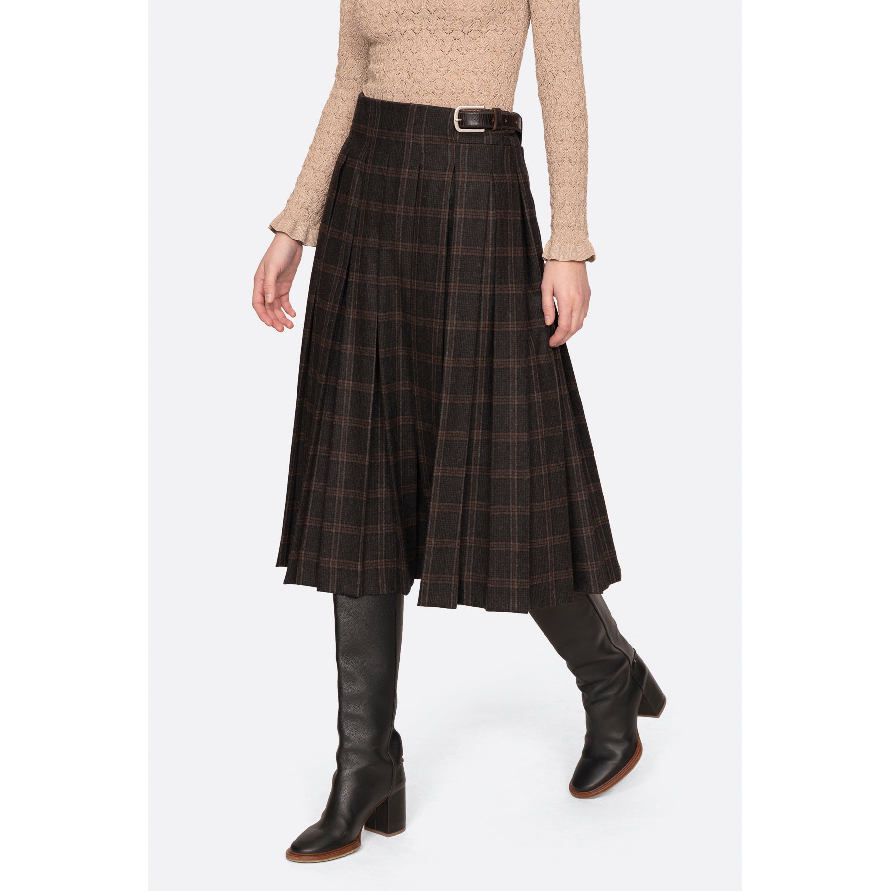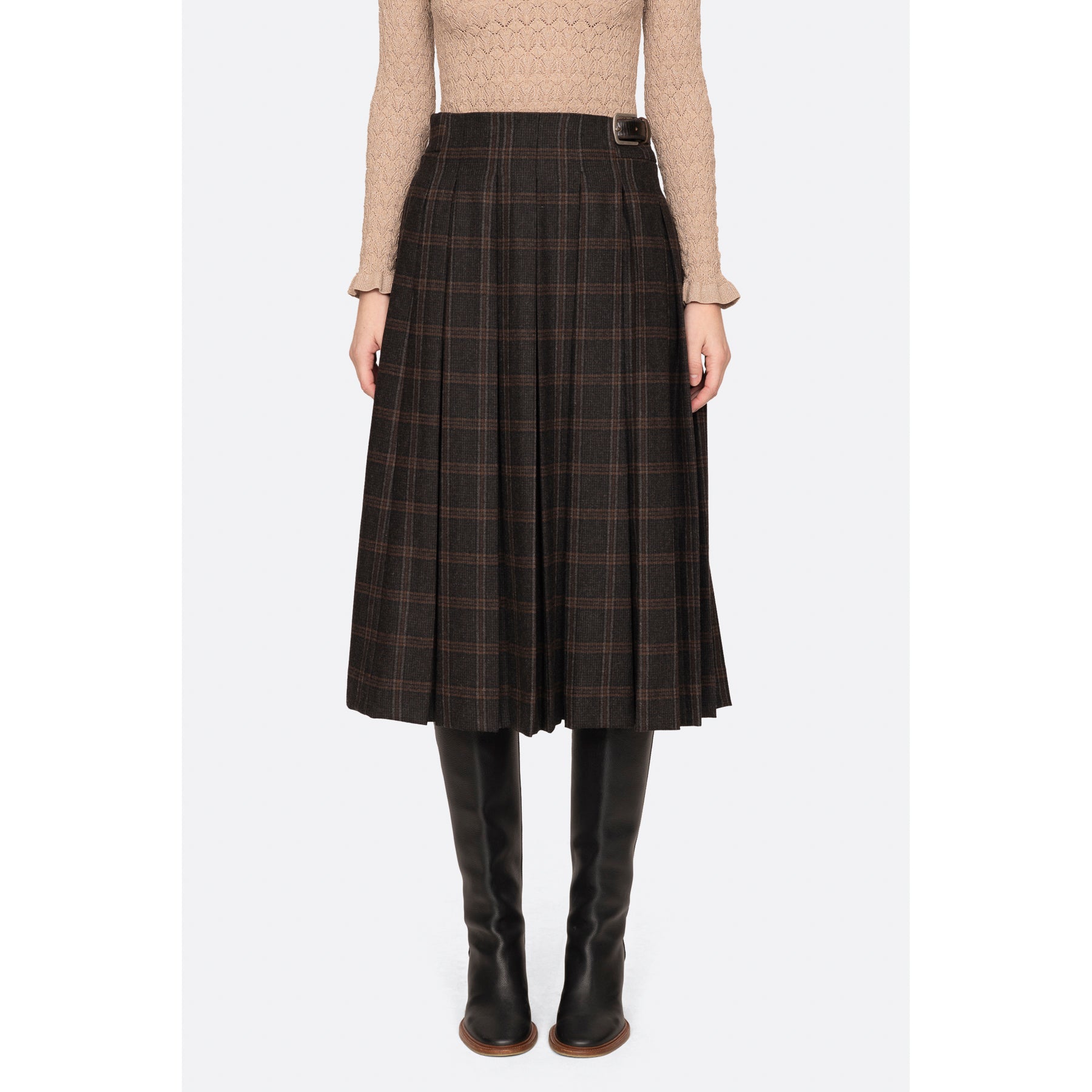 Sea New York Monroe Wool Plaid Belted Pleat Skirt