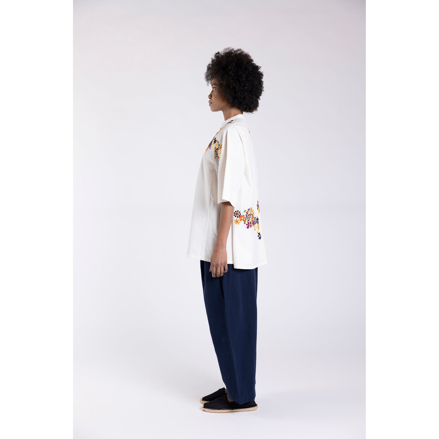Toast Quilted Cotton Barrel Leg Trousers Indigo
