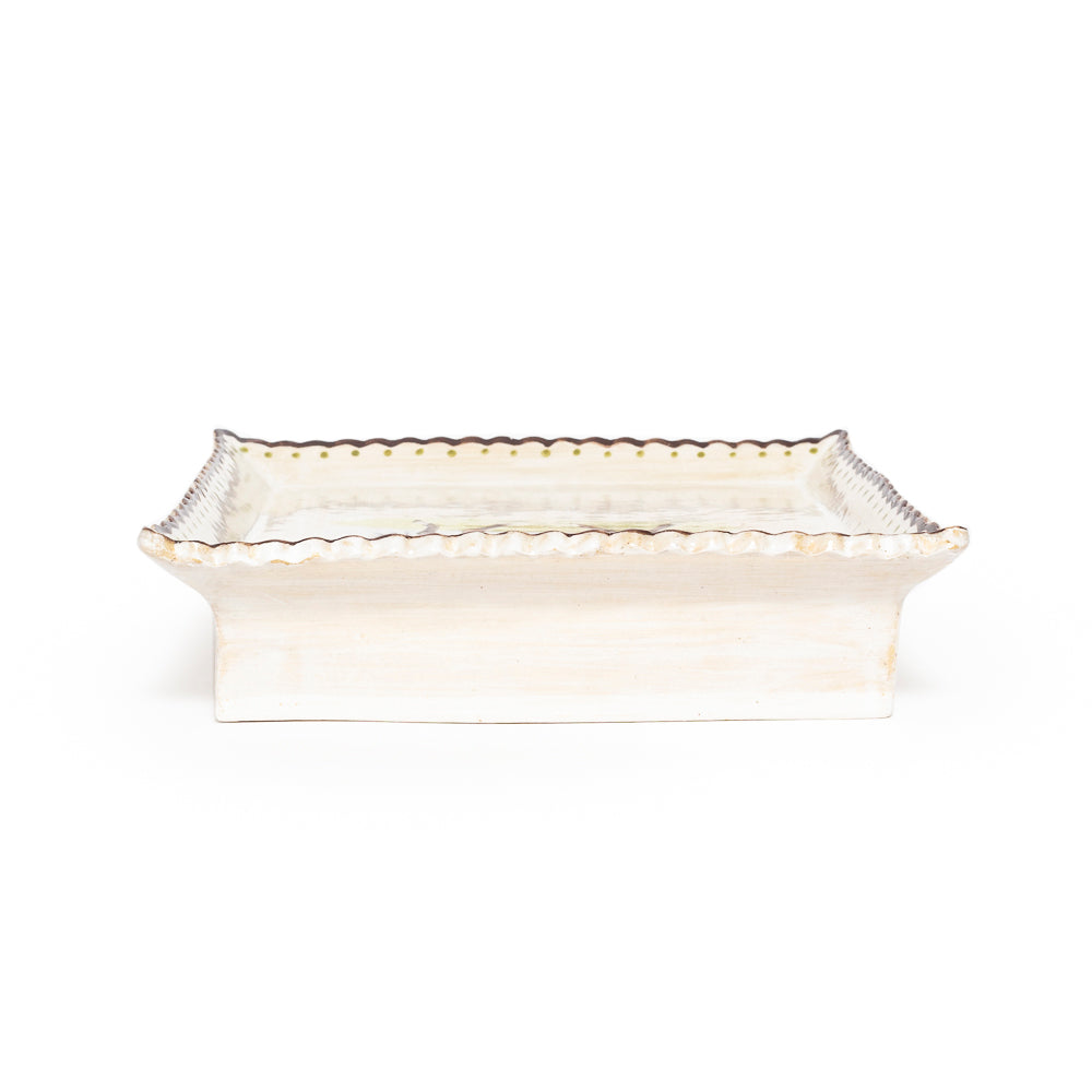 Handmade from start to finish, each one of Mary Aldrich's ceramics feature natural motifs inspired by the Hudson Valley. Finished with delicate scalloped edges, this charming serving tray will display your favorite hors d'oeuvres or desserts in style.